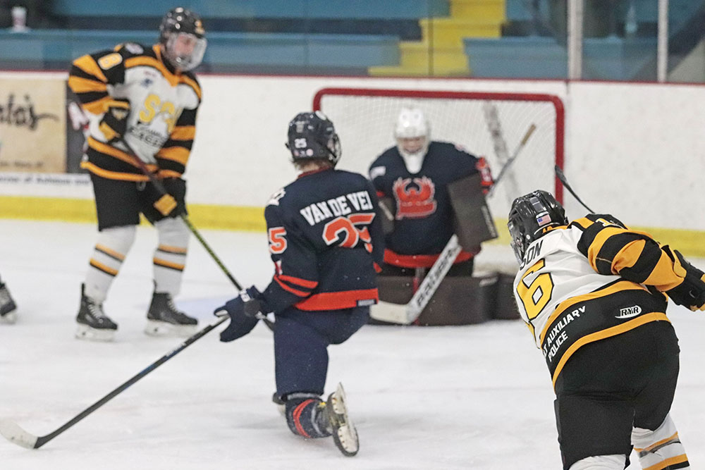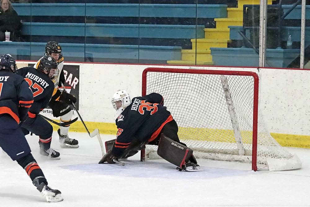 Renewing acquaintances, the long-time rivals saw the hometown Eagles open the scoring nearly 15 minutes into the matchup as Lucas Caulfield heaved a head-man pass from deep in his own zone that hit Marceau, who went in on the right side and sent a shot off the stick of a defender that eluded Thunderbirds’ starter Ryan Hicks.